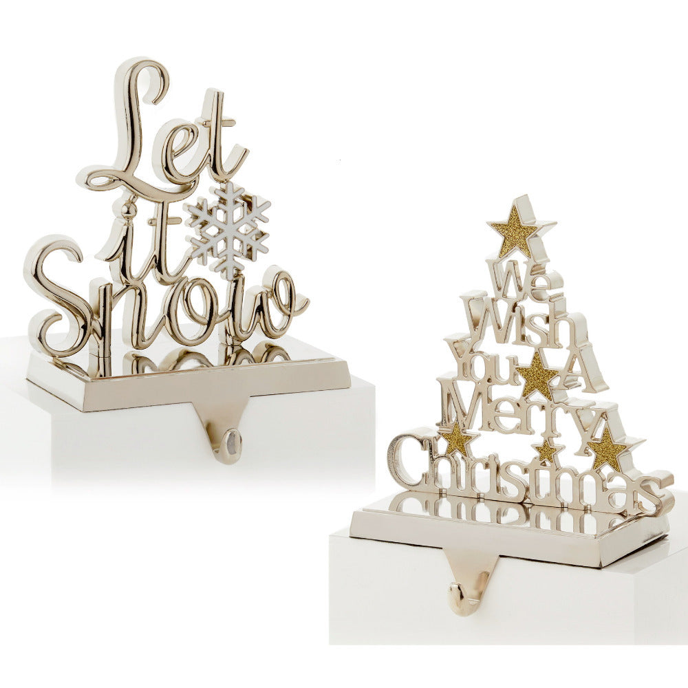 These gorgeous high quality stocking holders make the perfect addition to any home. They are solid metal making them very heavy and sturdy for the Mantel Piece or other ledge in the house.